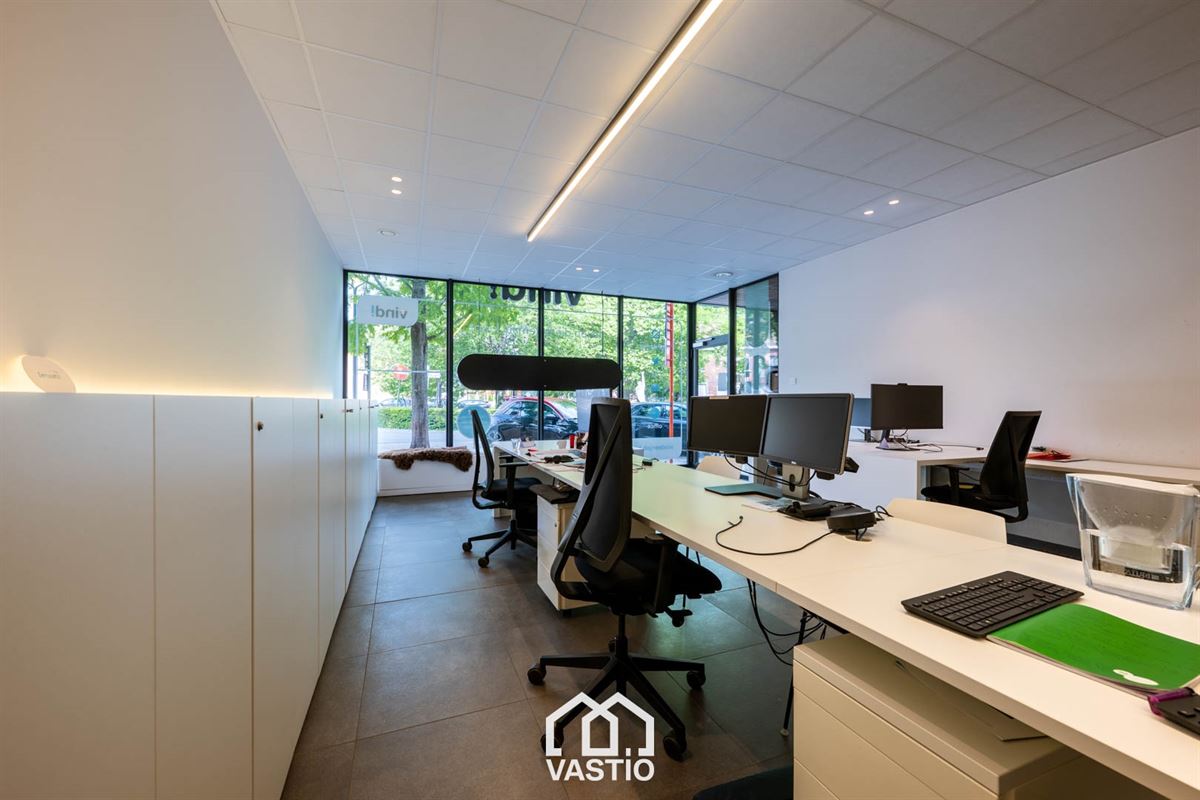 Aansluitend vind je een aparte eet- of vergaderruimte die dankzij een schuifdeur eenvoudig kan worden afgesloten van de commerciële ruimte — ideaal voor overlegmomenten, lunchpauzes of discreet werken.